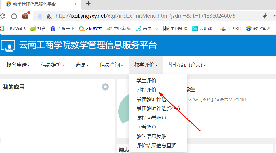 正方系统(云南工商学院教学管理信息服务平台)进行。