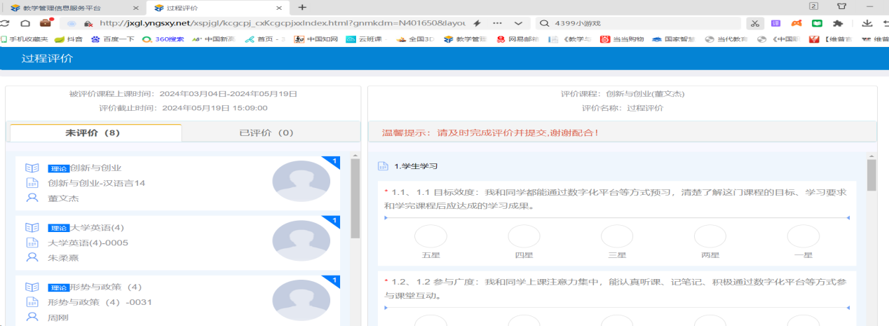 3.对参评学生进行宣传动员,宣讲评教目的和意义,在通知要求的时间内组织并督促学生完成评教工作。